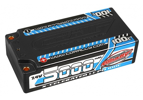 CORALLY XCELERATED 100C LIPO BATTERY 5000 MAH 7.4V SHORTY 2S 4MM BULLIT C-49705