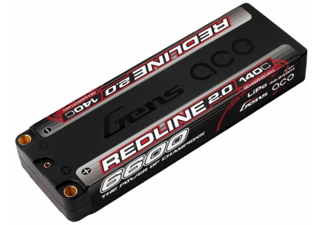 GENSACE Li-Po HV Car Hard Case 2S1P 7.6V 6600mAh 140C RL2 with 5mm O-GC2H6600-140G5R