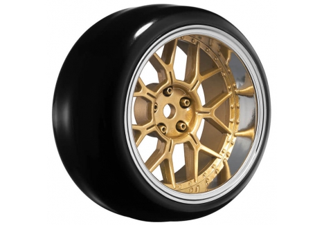 LOUISE RC 1/10 DRIFT 2,4,6,8MM OFFSET 14-SPOKE WHEELS BRONZE WITH TYRES LNHA568T