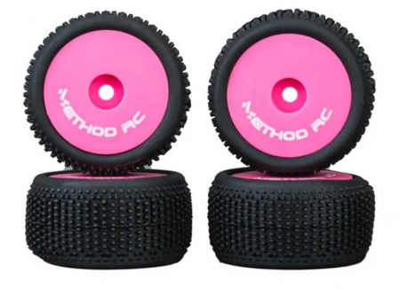 METHOD NITRAGRIP 1/24 BUGGY TYRES F/R ON 7MM HEX PINK (4) MTD0606P
