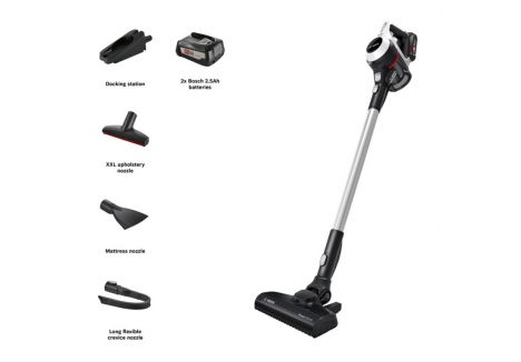 Bosch Cordless Vacuum Cleaner – 30-Minute Runtime Stick Vacuum White with Extra Battery – BCS612GBKIT