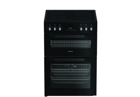 Hotpoint Double Oven Electric Cooker, 60cm Ceramic Hob, Black Finish – HDE6VDC2B1