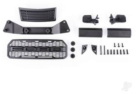 Traxxas Grille/ grille mount/ mirrors, side (left & right)/ mirror mounts (left & right)/ body mount adapter/ rear latch retainers (2)/ 2.6x8mm BCS (self-tapping) (3)/ 2.6x20mm BCS (self-tapping) (2)/ 3x10mm BCS (8) (fits #5916 body) TRX5921