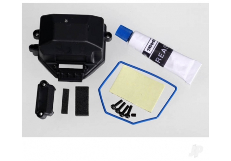 Traxxas Box, receiver (sealed) / wire cover / foam pads, upper & lower / silicone grease / 2.5x8 CS (4 pcs) / 3x4 GS (1pc) TRX7024X
