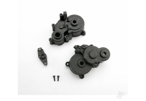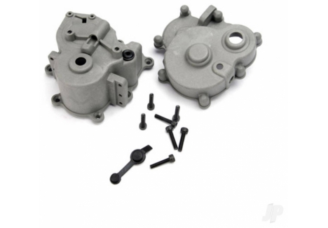 Traxxas Gearbox halves (Front & Rear) / rubber access plug / shift detent ball / spring / 4mm GS / shift shaft seal, Glued TRX5181