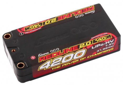 GENSACE Li-Po HV Car Hard Case 2S1P 7.6V 4400mAh 140C RL2 Short 5mm O-GC2H4400S-140G5