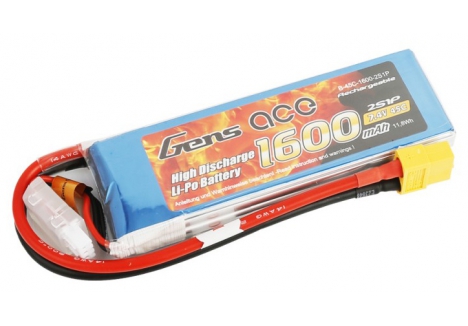 GENSACE - Li-Po 2S 7.4V 1600mAh 45C with XT60 - O-G2S1600-45X6