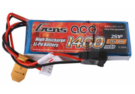 GENSACE Li-Po 2S 7.4V 1400mAh Rx with JR O-G2S1400-RX