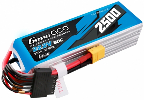 GENSACE Li-Po G-Tech 6S 22.2V 2500mAh 80C with XT60 O-GT6S2500-80X6