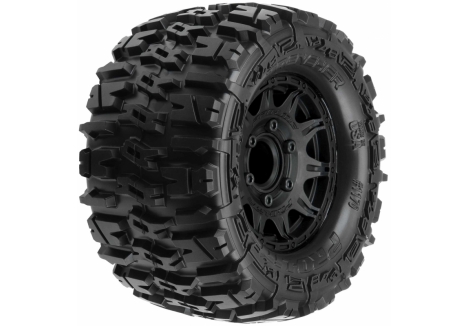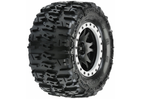 Traxxas Wheels & Tyres, Assembled, Glued (Black Chrome wheels, belted Sledgehammer All-Terrain tyres, dual profile (2.9in outer, 3.8in inner), foam inserts) (2) (17mm splined) (TSM rated) TRX8979A