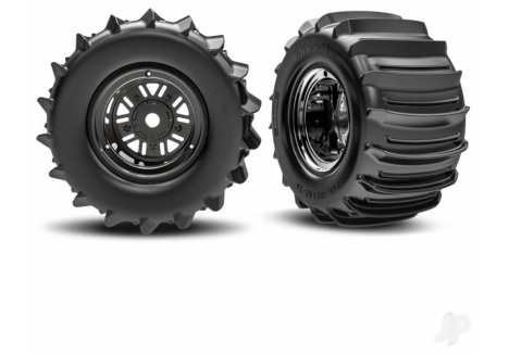 Traxxas Wheels & Tyres, Assembled, Glued (3.8in Black Chrome wheels, belted Sledgehammer tyres, foam inserts) (2) TRX9573A