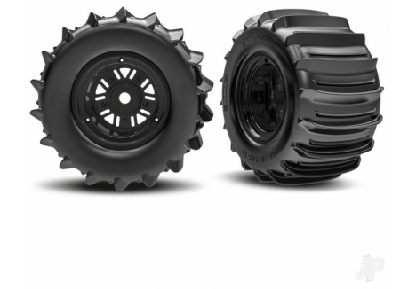 Traxxas Wheels & Tyres, Assembled, Glued (3.8in Black wheels, belted Sledgehammer tyres, foam inserts) (2) TRX9573