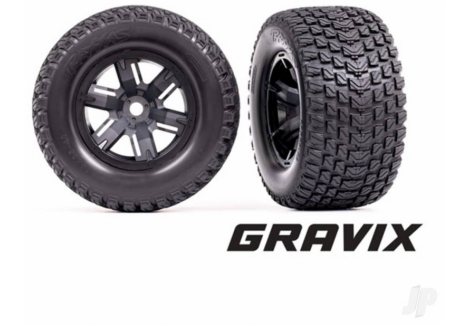 Traxxas Wheels & Tyres, Assembled, Glued (X-Maxx Black wheels, Gravix Tyres, foam inserts) (left & right) TRX7877