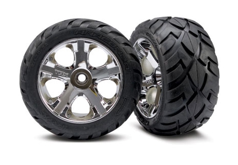 Traxxas Wheels & Tyres, assembled, glued (All-Star chrome wheels, Anaconda Tyres, foam inserts) (nitro rear/ electric front) (1 left, 1 right) TRX5576R