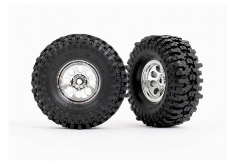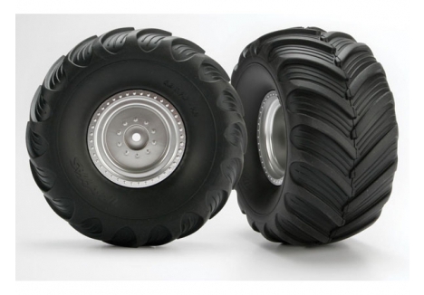 Traxxas Wheels & Tyres, assembled, glued (Satin Chrome wheels, Terra Groove dual profile Tyres, foam inserts) (nitro rear/ electric front) (2) TRX3665