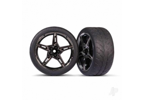 Traxxas Wheels & Tyres, Assembled, Glued (Weld Black Chrome wheels, tyres, foam inserts) (front) (2 pcs) TRX9474X