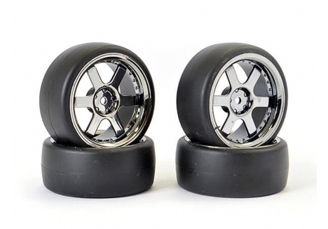 Fastrax 1/10 Drift D1 Tyre 3mm Offset 6 Spoke Wheel Black Chrome (4) FAST1350BC-D13