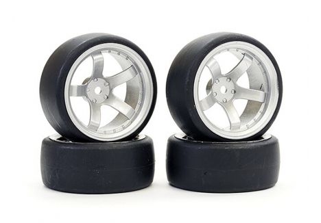 Fastrax 1/10 Drift D1 Tyre with 9mm Offset 5 Spoke Wheel Satin Silver (4) FAST1354SS-D19