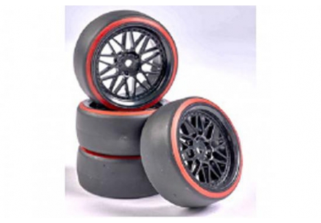 Fastrax Drift D1 Tyre & 5-Spoke Wheel Set – FAST1351MR-D13 – Metallic Red (1/10, 4-Pack) FAST1351MR-D13