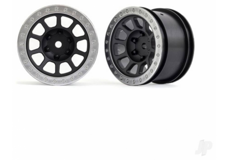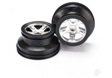 Traxxas Wheels, SCT Satin Chrome, Black beadlock style, dual profile (2.2" outer 3.0" inner) (2) (2WD front only) TRX5874X