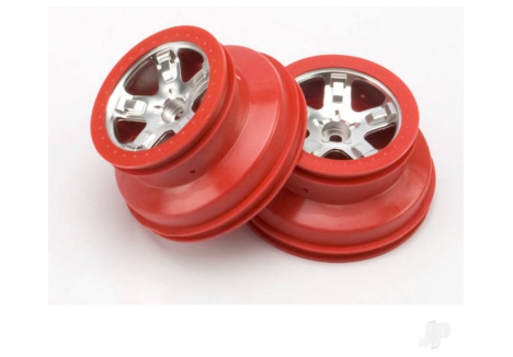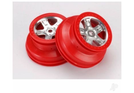 Traxxas Wheels, SCT Satin Chrome, Red beadlock style, dual profile (2.2" outer 3.0" inner) (Front) (2) TRX5874A