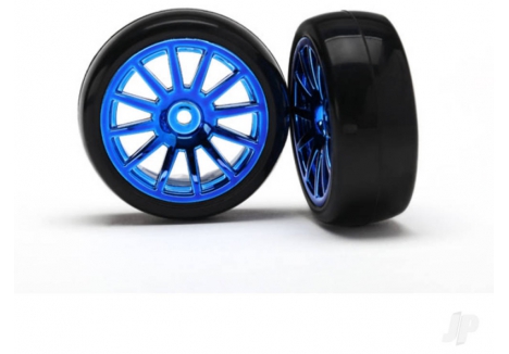 Traxxas Wheels & Tyres, assembled, glued (12-spoke Blue Chrome wheels, slick tyres) (2) TRX7573R
