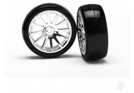 Traxxas Wheels & Tyres, assembled, glued (12-spoke Chrome wheels, slick tyres) (2) TRX7573