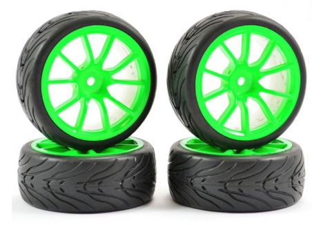 Fastrax 1/10 Street/ Tread Tyre 10 Spoke Neon Green Wheels FAST0072G