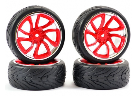 Fastrax 1/10 Street/ Tread Tyre Tri-5 Red and Chrome Wheels FAST0088RC