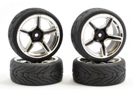 Fastrax Street/ Treaded Tyre Mounted on 5 Spoke Black/ Chrome Wheels (4) FAST0095BC