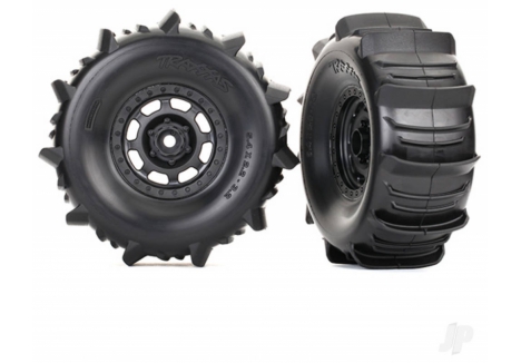 Traxxas Wheels & Tyres, Assembled, Glued, left (1), right (1) (Black wheels, Maxx Slash belted tyres, foam inserts) (17mm splined) (TSM rated) TRX10272