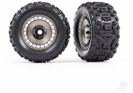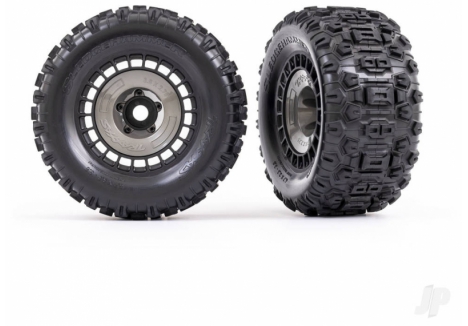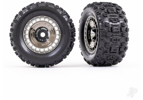 Traxxas Wheels & Tyres, Assembled, Glued (3.8in Satin Black Chrome wheels, Satin Black Chrome wheel covers, Sledgehammer tyres, foam inserts) (2 pcs) TRX9572A