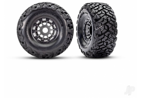 Traxxas Wheels & Tyres, assembled, glued (X-Maxx Black wheels, Maxx AT Tyres, foam inserts) (left & right) (2) TRX7772X