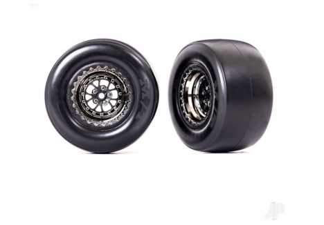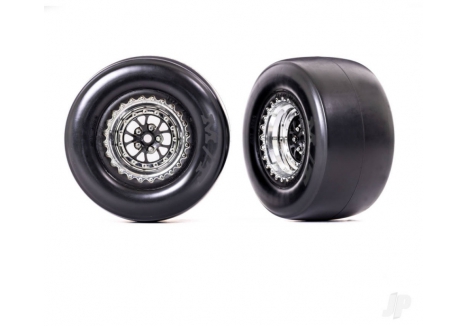 Traxxas Wheels & Tyres, Assembled, Glued (Weld Black Chrome wheels, Mickey Thompson ET Drag Slicks, smoke, foam inserts) (rear) (2 pcs) TRX9477X