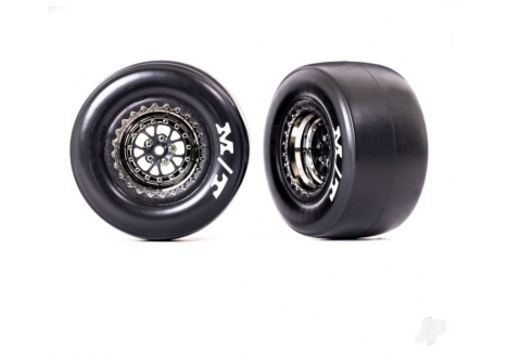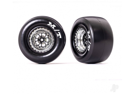Traxxas Wheels & Tyres, Assembled, Glued (Weld Chrome with Black wheels, Mickey Thompson Drag Slicks, sticky compound, foam inserts) (rear) (2 pcs) TRX9476R