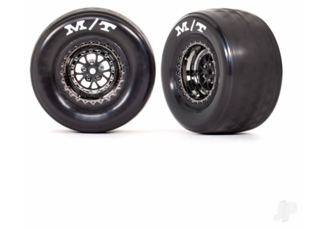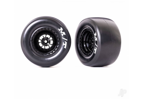 Traxxas Wheels & Tyres, Assembled, Glued (Weld Glossy Black wheels, Mickey Thompson Drag Slicks, sticky compound, foam inserts) (rear) (2 pcs) TRX9476