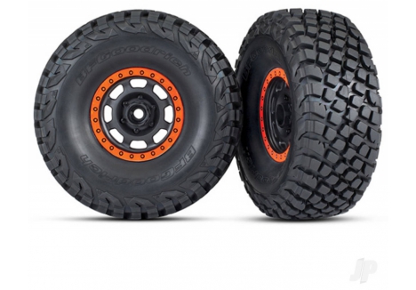 Traxxas Tyres & wheels, assembled, glued (Method Race Wheels, black with orange beadlock, BFGoodrich Baja KR3 tyres) (2) TRX8474-ORNG