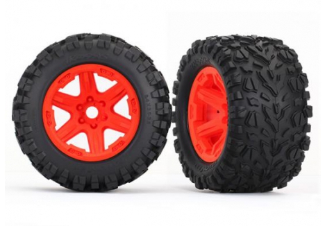 Traxxas Wheels & Tyres, assembled, glued (Orange wheels, Talon EXT Tyres, foam inserts) (2) (17mm splined) (TSM rated) TRX8672A
