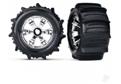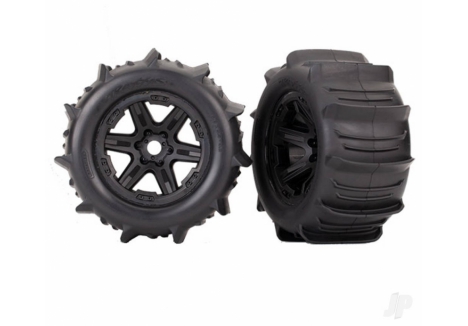 Traxxas Wheels & Tyres, Assembled, Glued (3.8in Black wheels, Sledgehammer Tyres, foam inserts) (2) TRX9672