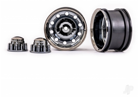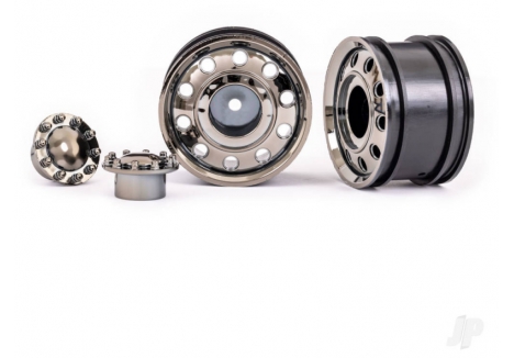 Traxxas Wheels, TRX-6 Big Rig 2.2in (Black Chrome) (rear) (2)/ centre caps (Black Chrome) (2) TRX8876X