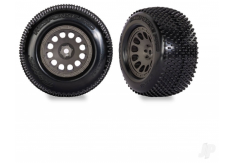Traxxas Tyres & wheels, assembled (charcoal grey wheels, dual profile (2.1" outer, 2.6" inner), Response Pro tyres, foam inserts) (2) TRX10774-GRAY