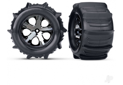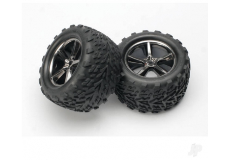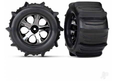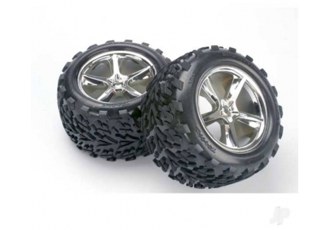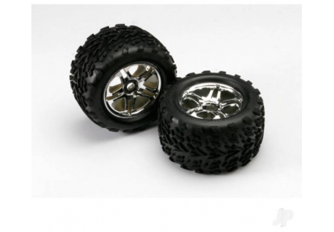 Traxxas Wheels & Tyres, assembled, glued (Gemini chrome wheels, Talon Tyres, foam inserts) (2) (also fits Maxx series) TRX5374