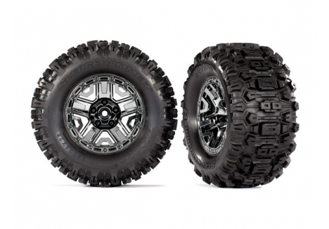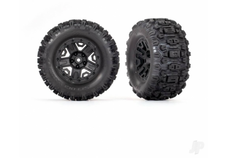 Traxxas Wheels & Tyres, Assembled, Glued (Black 2.8in wheels, Sledgehammer tyres, foam inserts) (electric rear) (2) (TSM rated) TRX3778