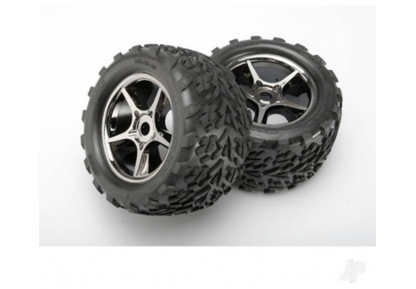 Traxxas Wheels & Tyres, assembled, glued (SS (Split Spoke) chrome wheels, Talon Tyres, foam inserts) (2) (use w/17mm splined wheel hubs & nuts, part #5353X) TRX5174R