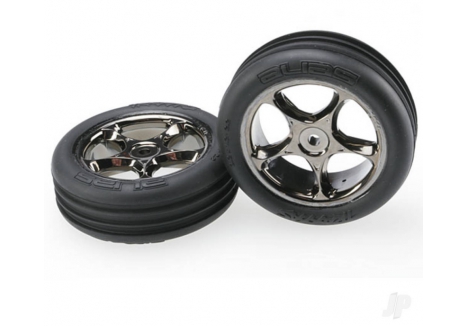 Traxxas Wheels & Tyres, Assembled, Glued (2.8in) (All-Star Black Chrome wheels, ribbed Tyres, foam inserts) (electric front) (2) TRX3771A