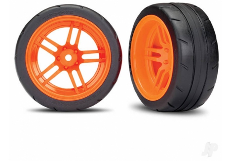 Traxxas Wheels & Tyres, assembled, glued (Orange wheels, Talon EXT Tyres, foam inserts) (2) (17mm splined) (TSM rated) TRX8672A