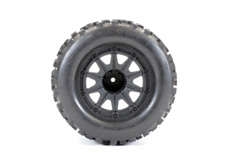 Fastrax 1/8 Truggy Rock Mounted on 5 Spoke Black 0 Offset (pr) FAST1094B-0