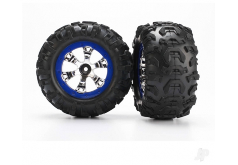 Traxxas Wheels & Tyres, Assembled (1.0in Satin Chrome wheels, Mickey Thompson Baja Pro Xs 2.4x1.0in tyres) (2) TRX9872