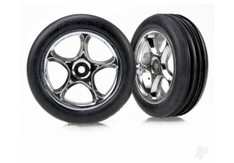 Traxxas Wheels & Tyres, Assembled (six spoke Graphite Grey wheels w/Chrome rim, 1.9" Drift tyres (2 dots, soft, smooth surfaces)) (front) (2) TRX10577