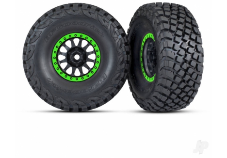 Traxxas Tyres & wheels, assembled, glued (Method Race Wheels, black with green beadlock, BFGoodrich Baja KR3 tyres) (2) TRX8474-GRN